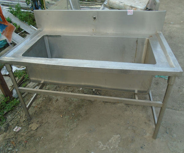Với chậu rửa công nghiệp, inox dùng làm mặt bàn và hố chậu phải dày dặn, chắc chắn. Tối thiểu sử dụng inox dày 1.0mm trở lên, có hệ xương tăng cứng chắc chắn. Một số đơn vị vì mục đích giảm giá thành thường dùng inox mỏng (0.8) hoặc dùng hố mua sẵn của Trung quốc (0.6) tuy nhìn bắt mắt nhưng rất ọp ẹp, dễ móp khi có va đập.